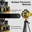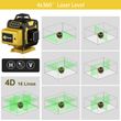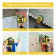 4D Self Leveling Laser Level with 2x360° horizontal lines and 2x360° vertical lines cover all around the room.Can quickly visualize and complete square layout by utilizing two 360° vertical lines that intersect at 90° angles. You can easily use the remote control or the buttons on the levelling laser. easily choose to turn on/off any laser line.