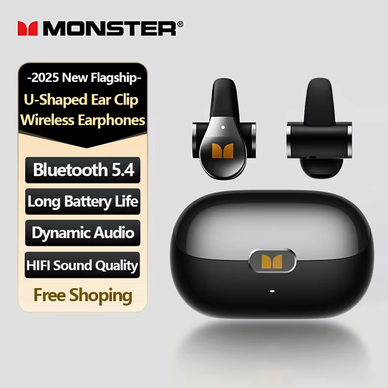 Choice Monster MQT60 OWS Bluetooth V5.4 Earphones Sensitive Touch Control Ear-clip Earbuds Large Battery Capacity Headphones