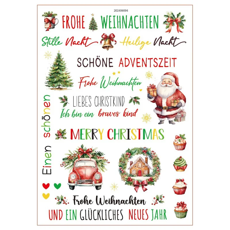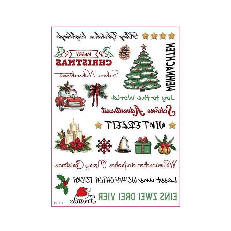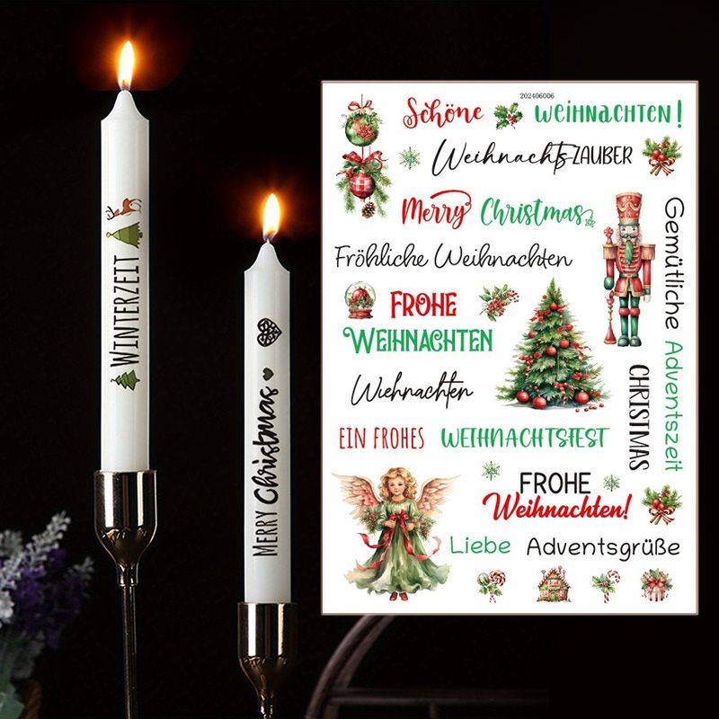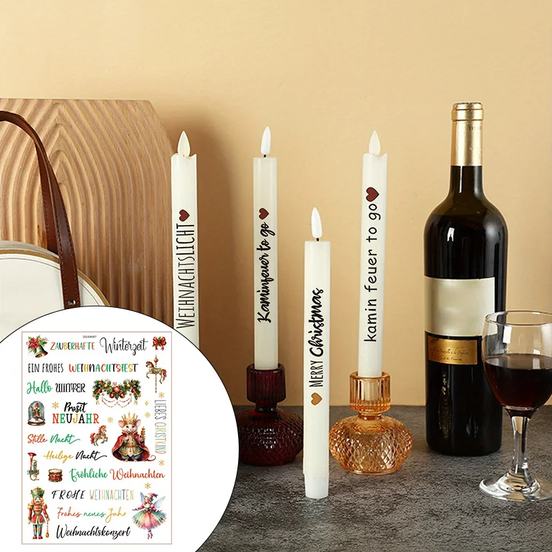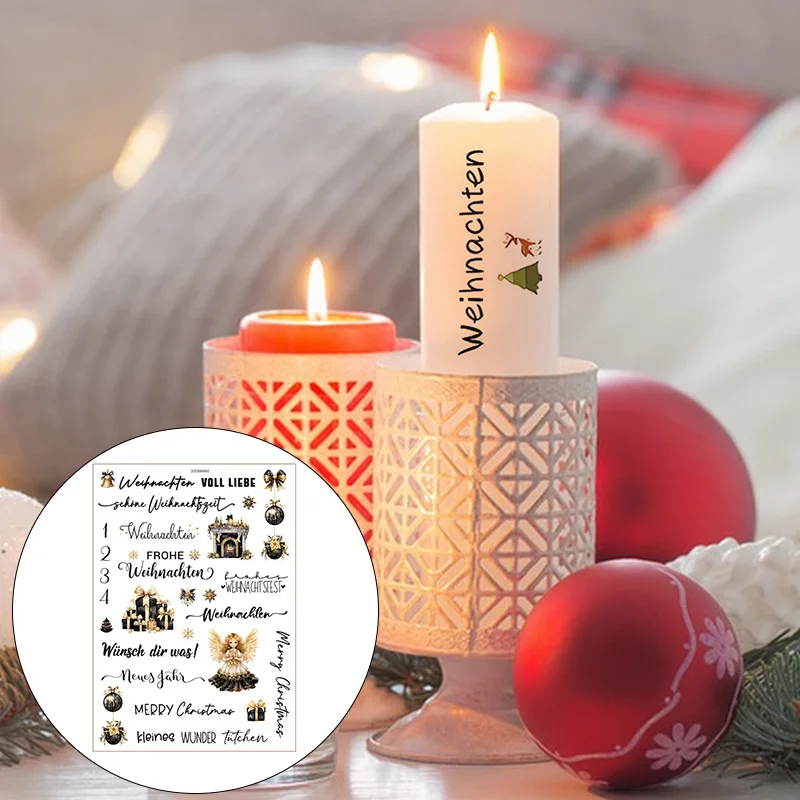 Christmas Candle Tattoo Stickers Santa Claus Letter Love Pattern Self-Adhesive New Year Decorative Film Decals Candle Sticker