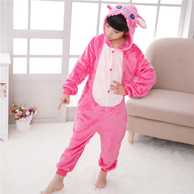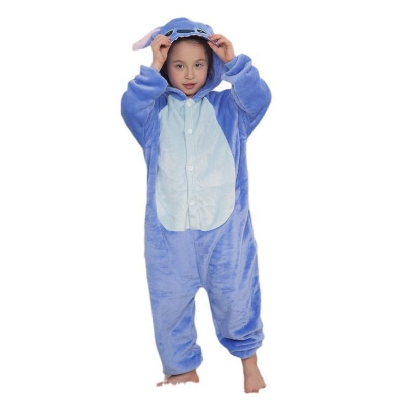 Christmas Cartoon Lilo & Stitch One-Piece Pajamas Disney Children Plush Kigurumi Onesies Winter Warm Clothes Boys Girls Gift