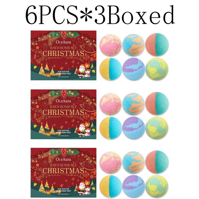 OceAura Christmas Bath Bombs Gift Set Aromatherapy Relax Stress Exfoliating Moisturize Shower Cleaner Handmade Bath Salt Ball 30g*6pcs boxed