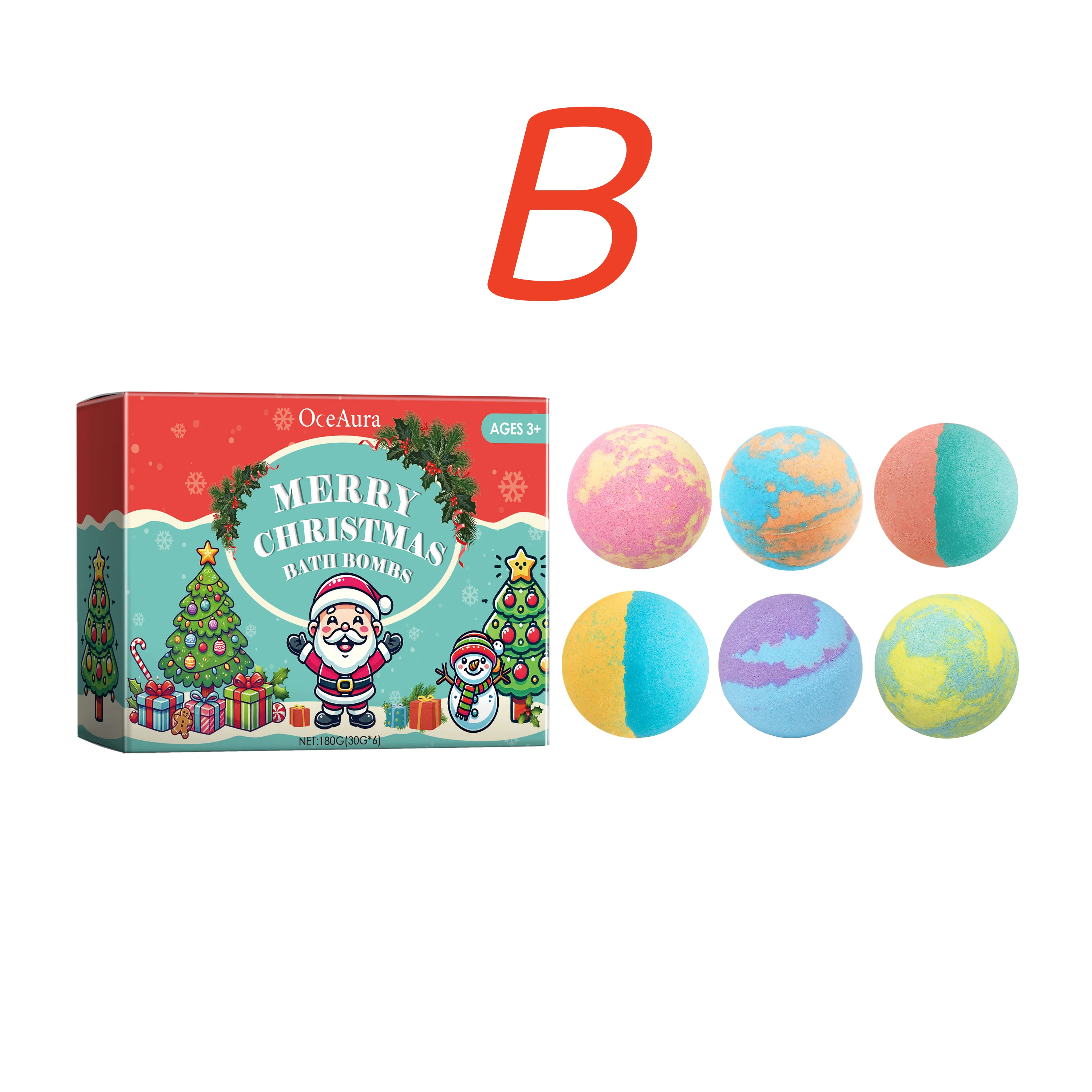 OceAura Christmas Colorful Bath Balls Foot Spa Deep Moisturizing Skin Relaxing Reduce Dryness Kids Gifts Bubble Rosemary Bath Ball Bombs 180g
