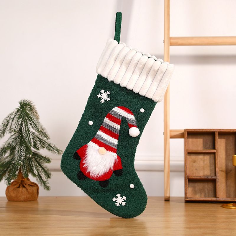 Christmas Decoration Embroidered Old Man Christmas Candy Socks Gift Bag Pendant Green 46x27cm