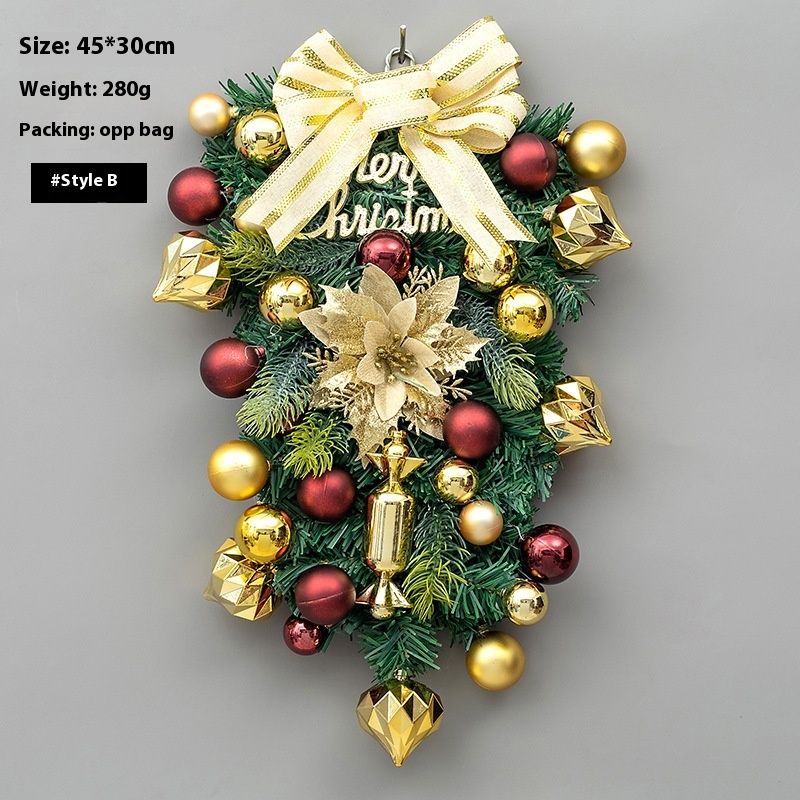 Christmas Decoration Upside Down Christmas Tree Horn Rattan Christmas Wreath B Artificial Flower