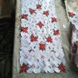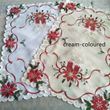 Color: bleached, light beige, red flowers and green leaves, red Christmas flowers, red and filled