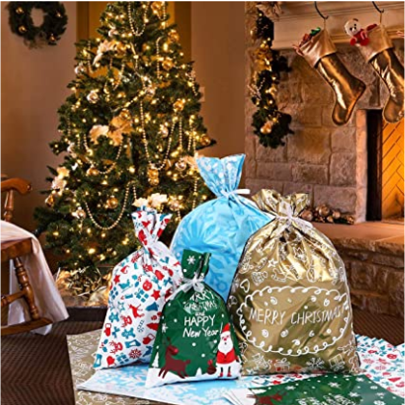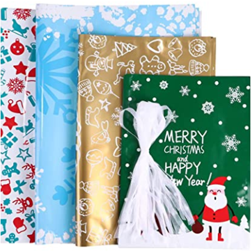 Description: This item is a set of 30 cute Christmas pattern style gift bags, made of high-grade aluminum foil material, which can be used to store Christmas gifts, candies, chocolates, etc.