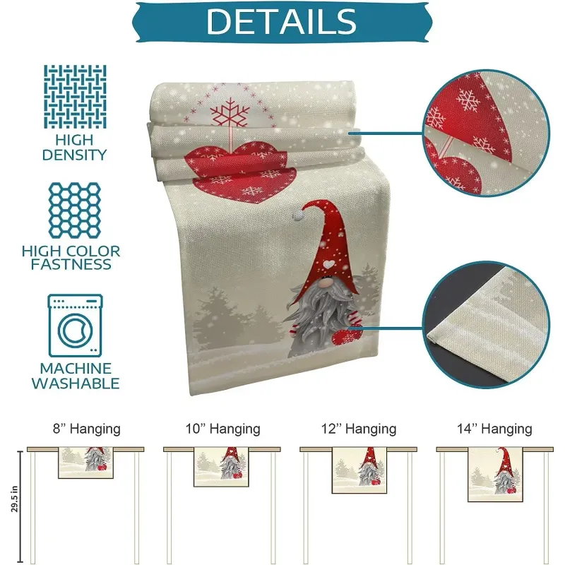 Christmas Gnome Snowflake Love Heart Linen Table Runners Dresser Scarves Decor Reusable Kitchen Dining Table Runner Party Decor