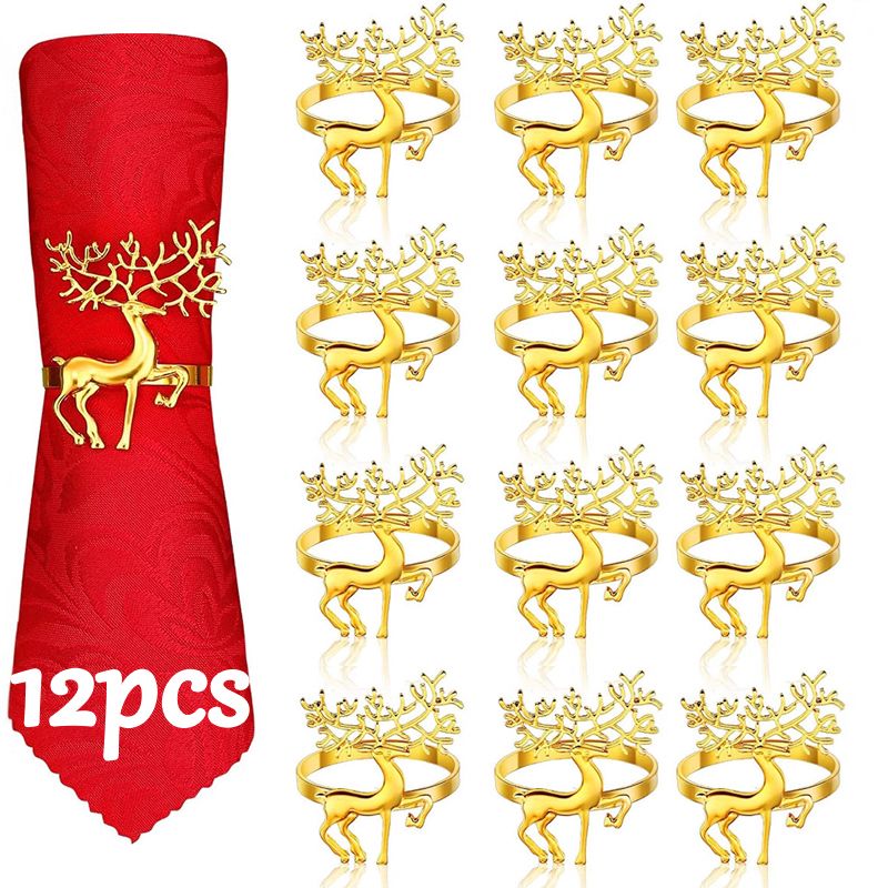 Christmas Napkin Rings Gold Reindeer Used For Holiday Parties Christmas Wedding Thanksgiving Home Dinner Table Decoration
