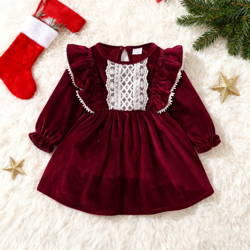 Christmas Party Skirt Baby Girl Long Sleeve Ruffle Satin Finish Dress Fashion Holiday Autumn Winter Wear for Kids Girl 0-7 Years