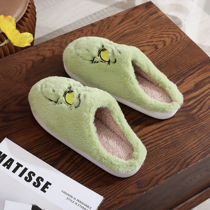 For Grinch Plush Slippers Fluffy Home Slippers Breathable Cute Monster Slippers Non Slip Soft Couple Slippers for Indoor Bedroom