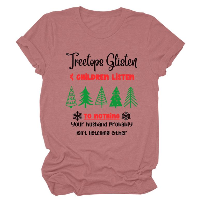 Christmas Print Casual Short Sleeve T-Shirt Rose gold black color 2XL