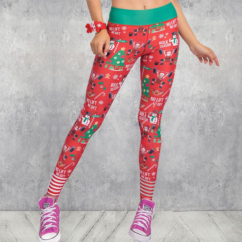 Christmas print clothing fitness pants yoga pants Santa Claus M
