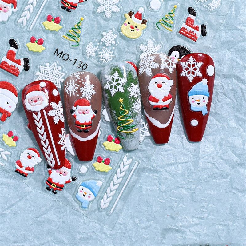 Christmas Relief Nail Stickers Paper Tape Adhesive Waterproof Embossed Sticker MO132