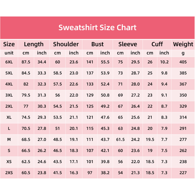 Size: 2XS,XS,S,M,L,XL,2XL,3XL,4XL,5XL