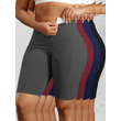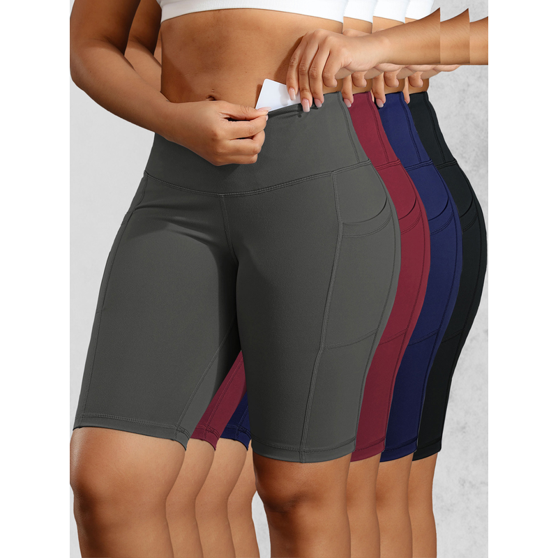 CHRLEISURE Women Solid Yoga Shorts with 3 Pockets High Waist Butt Lifting Workout Tights Gym Elastic Cycling Shorts Activewear