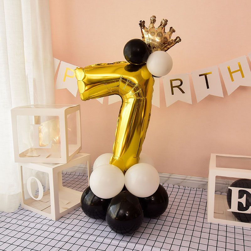 Chrome Gold Black 32inch Number Foil Column Balloons Happy Birthday Party Decorations Kids Boy Girl 1 2 3 4 5 6 7 8 9 Year Old