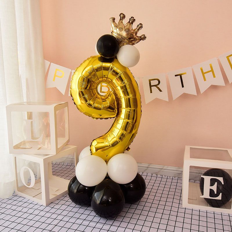 Chrome Gold Black 32inch Number Foil Column Balloons Happy Birthday Party Decorations Kids Boy Girl 1 2 3 4 5 6 7 8 9 Year Old