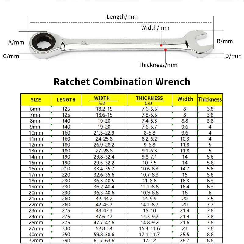 chrome vanadium ring gear ratchet wrench reversible 6-8-10-12-13-14-17-18-19-21-22-24-30-32mm ratchet combination spanner set