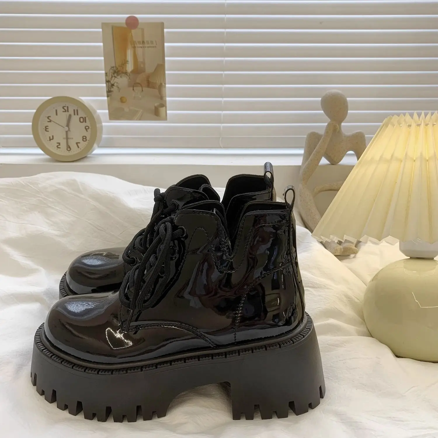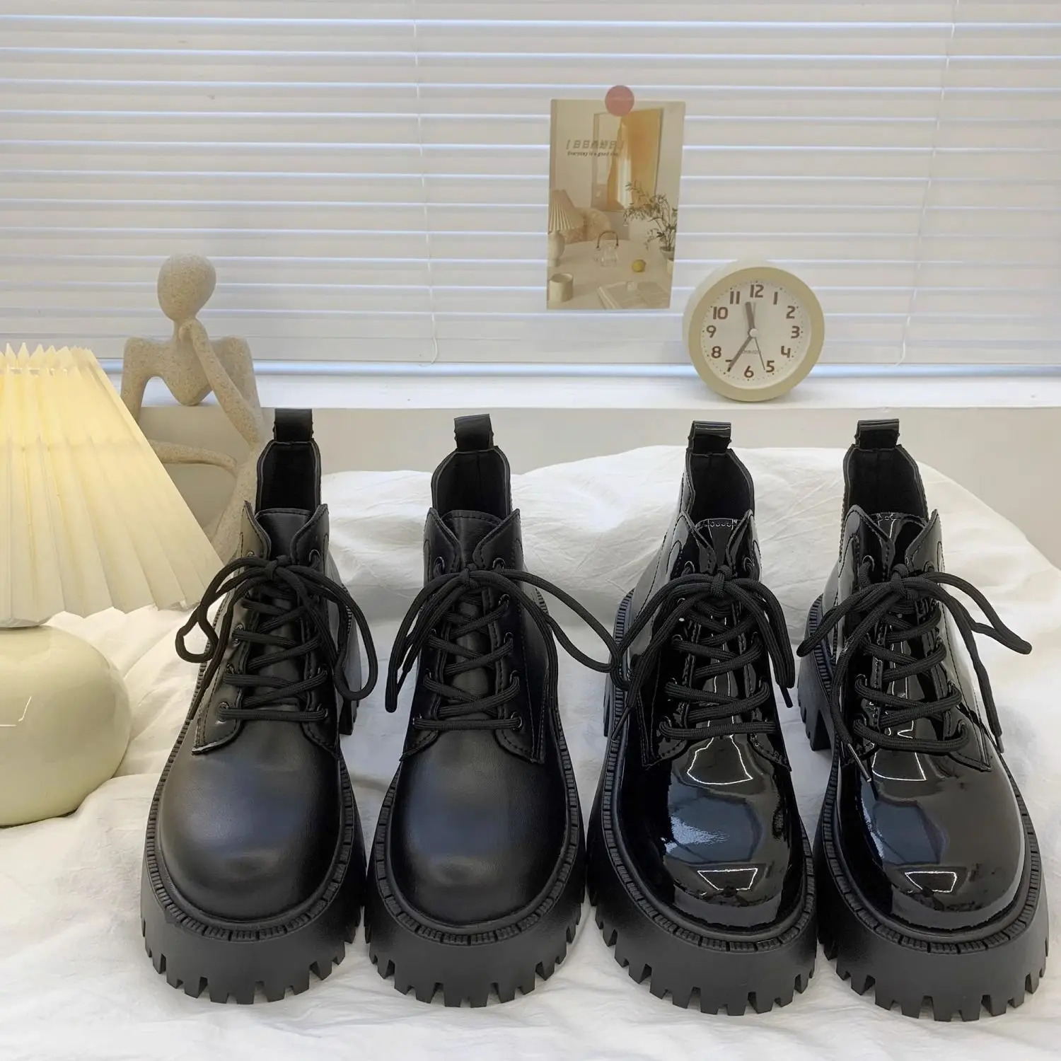 Chunky Black Platform Casual Women's Ankle Boots 2024 New Designer Autumn Winter British Style Platform Boots Shoes for Women