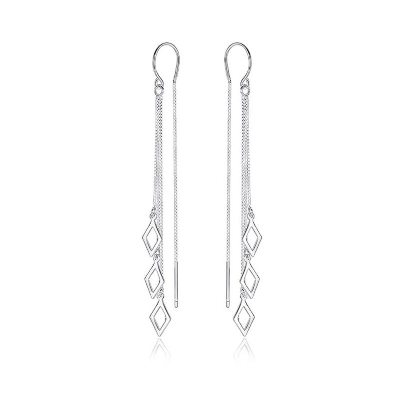 CIAXY Silver Color Geometric Rhombus Earrings for Women Temperament Tassel Long Ear Line Earring 2021 Fashion Jewelry Gift