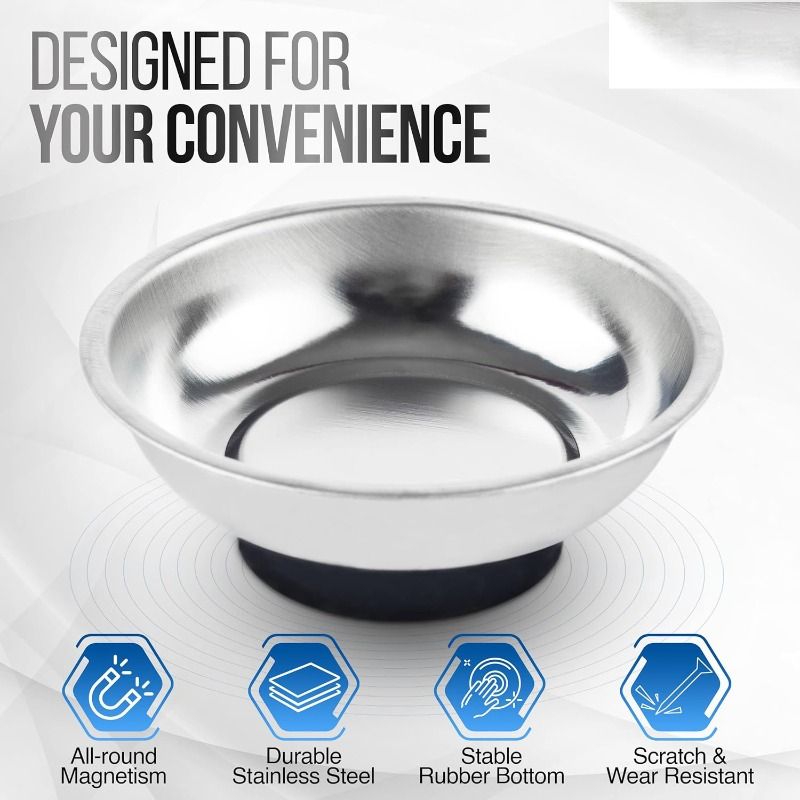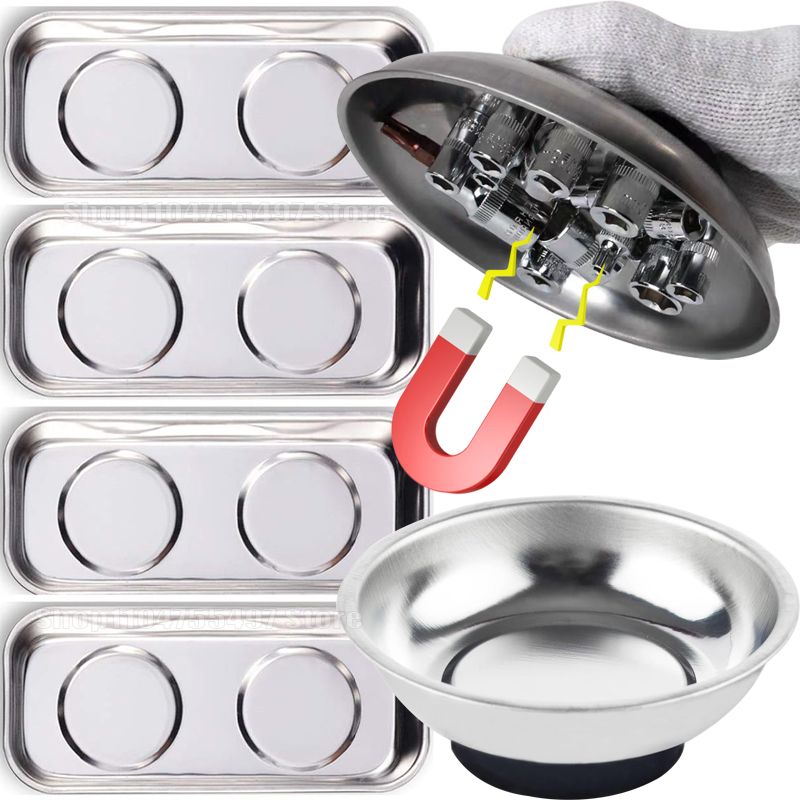 Circular Magnetic Parts Bowl 4" Magnetic Tray Rectangle Screw Storage Tray Stainless Steel Tools Tray for Auto Suction Pad Tools