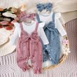 Baby Girls Long Sleeve Romper Floral Print Fake Two Pieces Patchwork Bow Jumpsuits and Cute Headband Set
