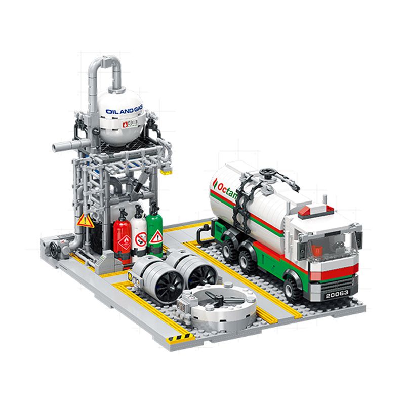 City Street View Building Blocks Natural Gas Storage Center Laboratory Transport Station 3 In 1 Assembly Model Bricks Adult Gift