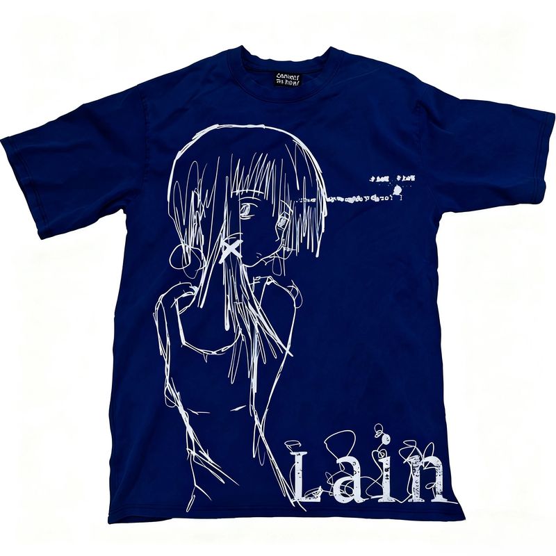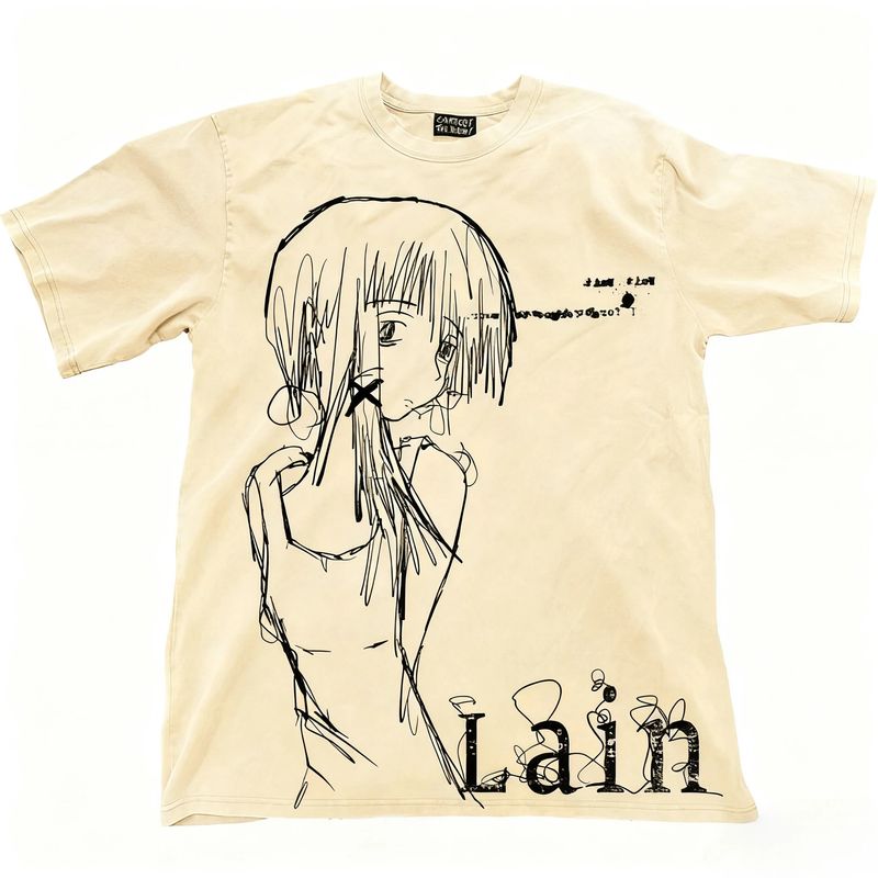 Classic Anime Lain Print Cotton Oversized T-shirt Men Women Short Sleeve Street High Quality Street Style Female Male Clothing