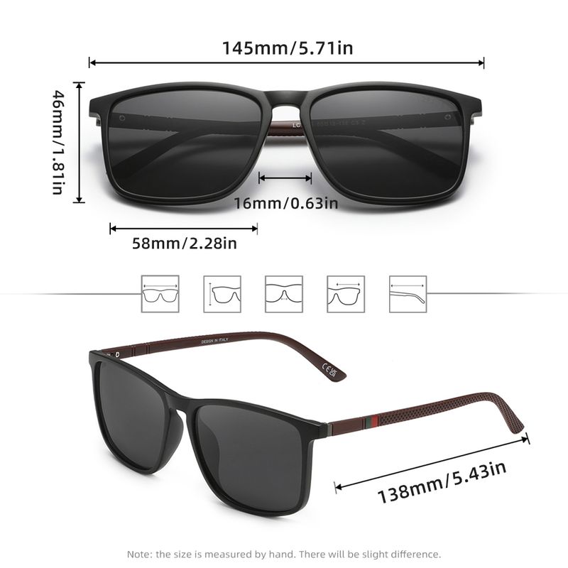 Classic Rectangle Sunglasses For Men Women Driving Fishing UV400 Protection Eyewear Polarized Fashion Glasses
