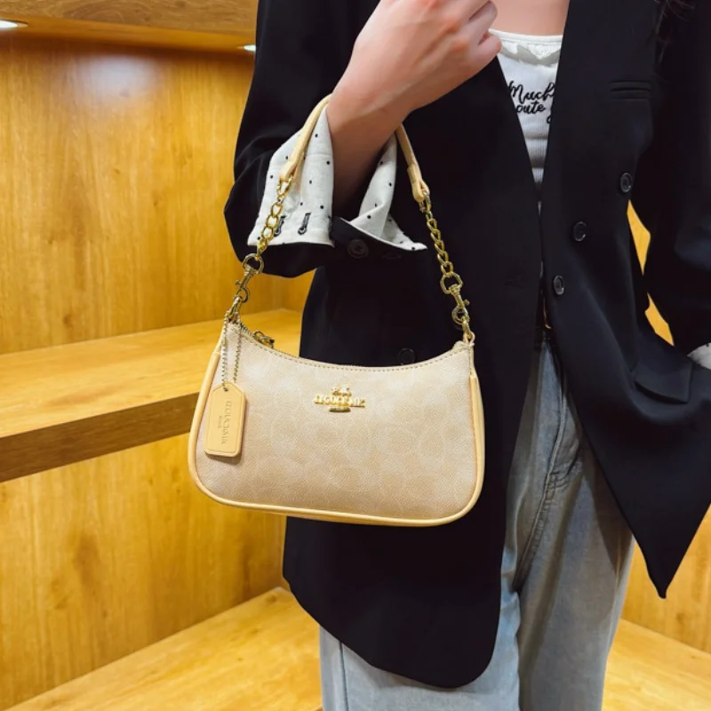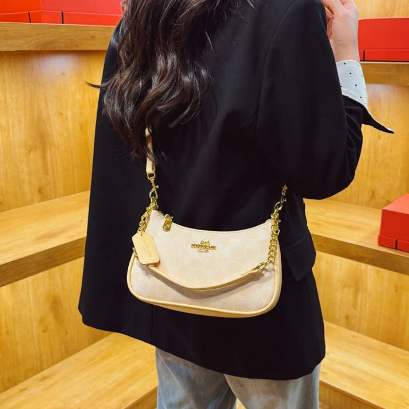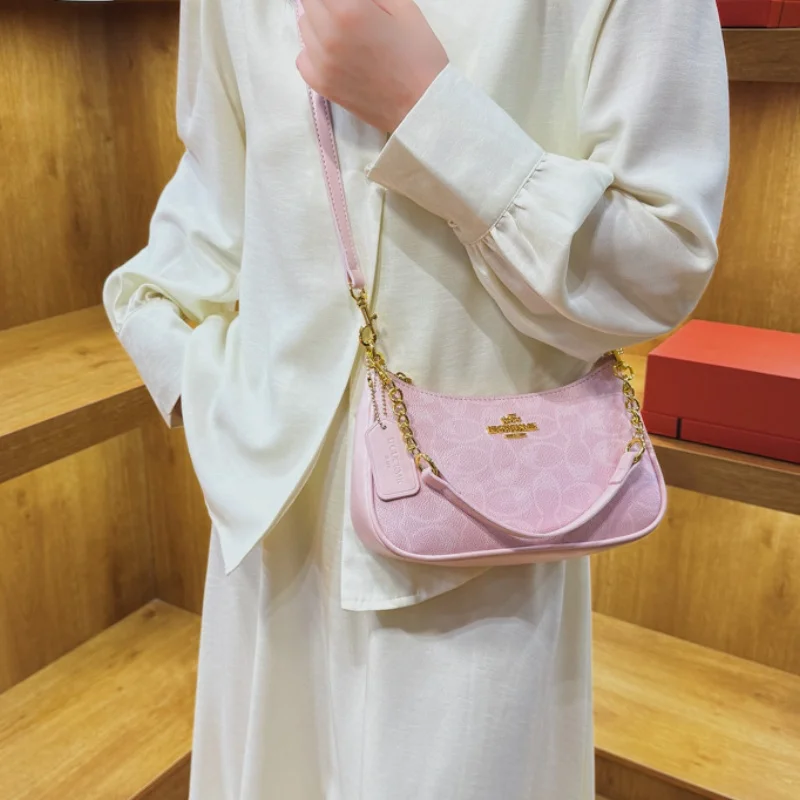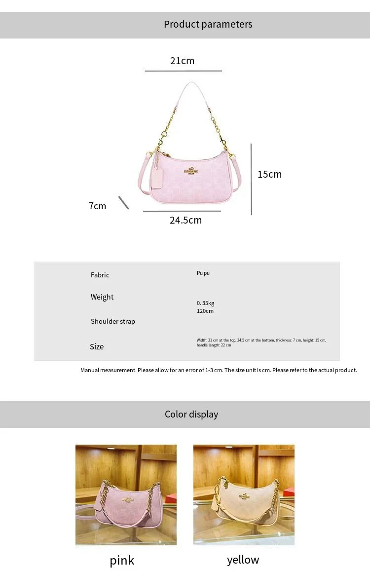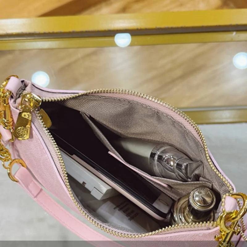 The bag is equipped with a phone pocket inside and a pocket on the outside for attaching items. It can categorically store mobile phones, keys, etc. The small size of 24.5×7×15cm can accommodate summer carry-on items. The two shoulder straps can be flexibly switched between single shoulder and cross-body styles, suitable for various dressing scenarios.