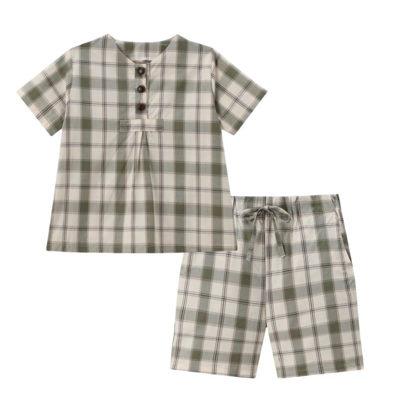 Clearance sale 2025 AS summer green grid & pink Floral collection brother sister family matching 100% cotton boys girls clothing