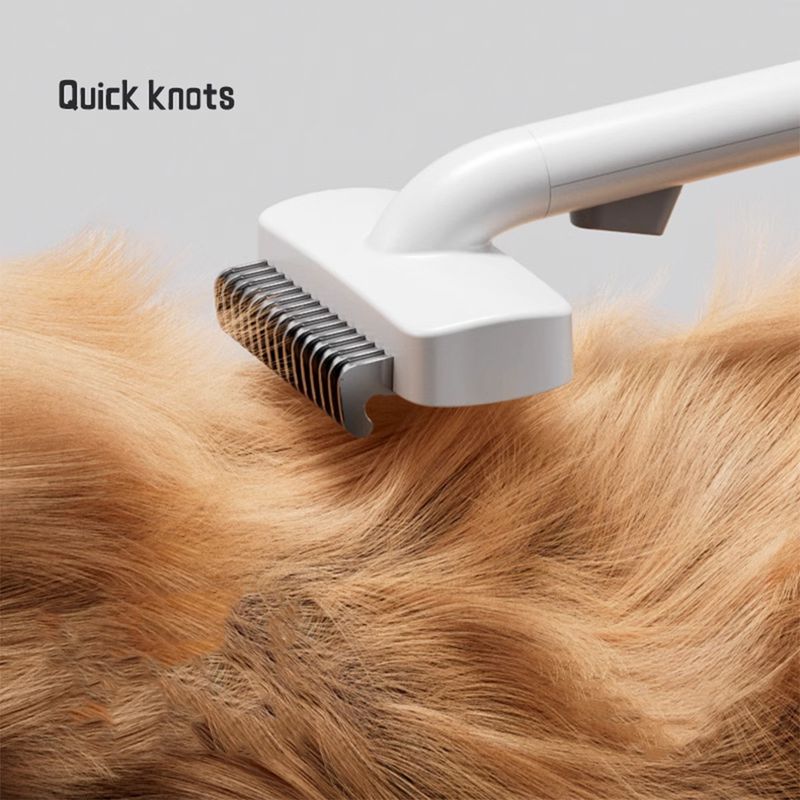 1. Quick Knot Opening, Smooth with a Comb: The sharp blade inside can quickly cut through dead knots, and the comb blades are tightly arranged to quickly open hair knots. The effect of easy knotting is obvious, and the comparison of pet hair status before and after use is significant. Before combing, the hair knots are messy, and after combing, the hair is neat and smooth.