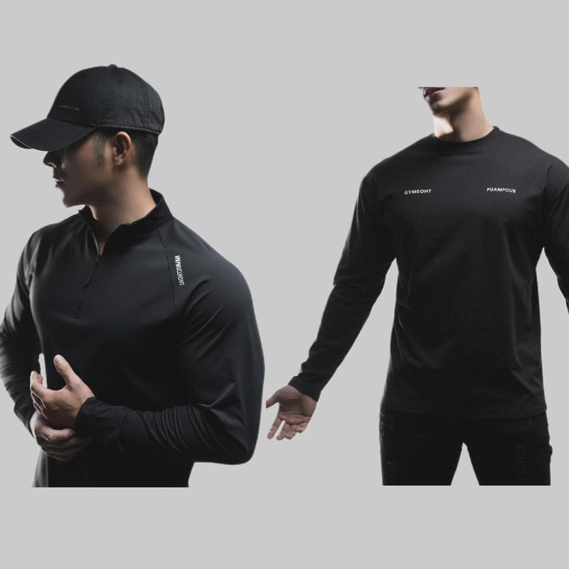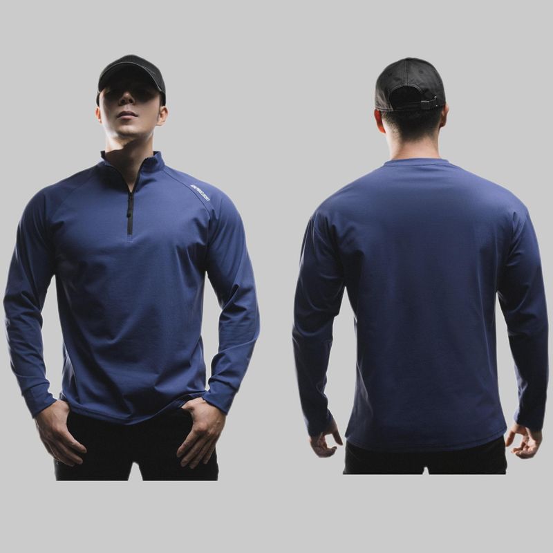 Clone Cotton Half Placketround Neck Fashion Sports Sweater Casual Long Sleeve Black Half Placket XXL