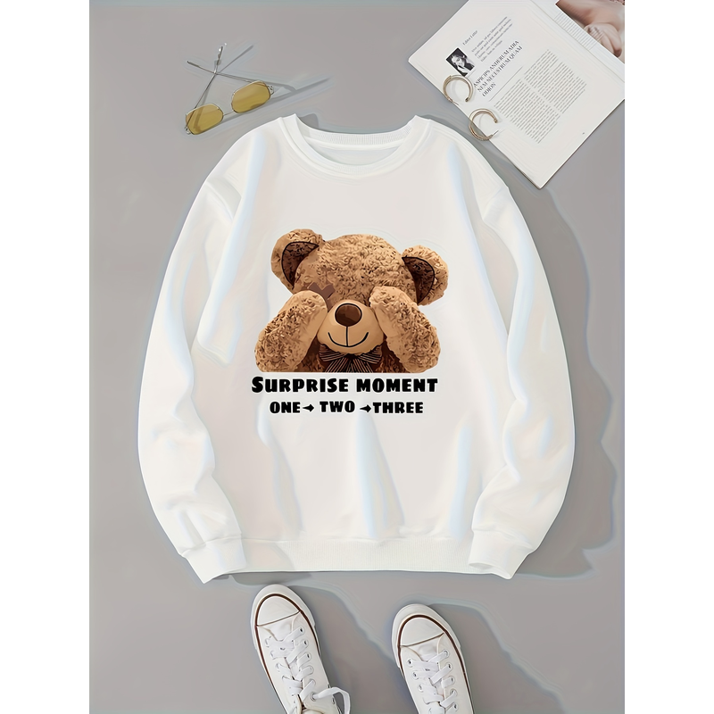 CLoose Sweatshirt Casual Long Sleeve Women Autumn and winter Cartoon Bear Comfortable Pullover Crewneck Loose Female Clothes