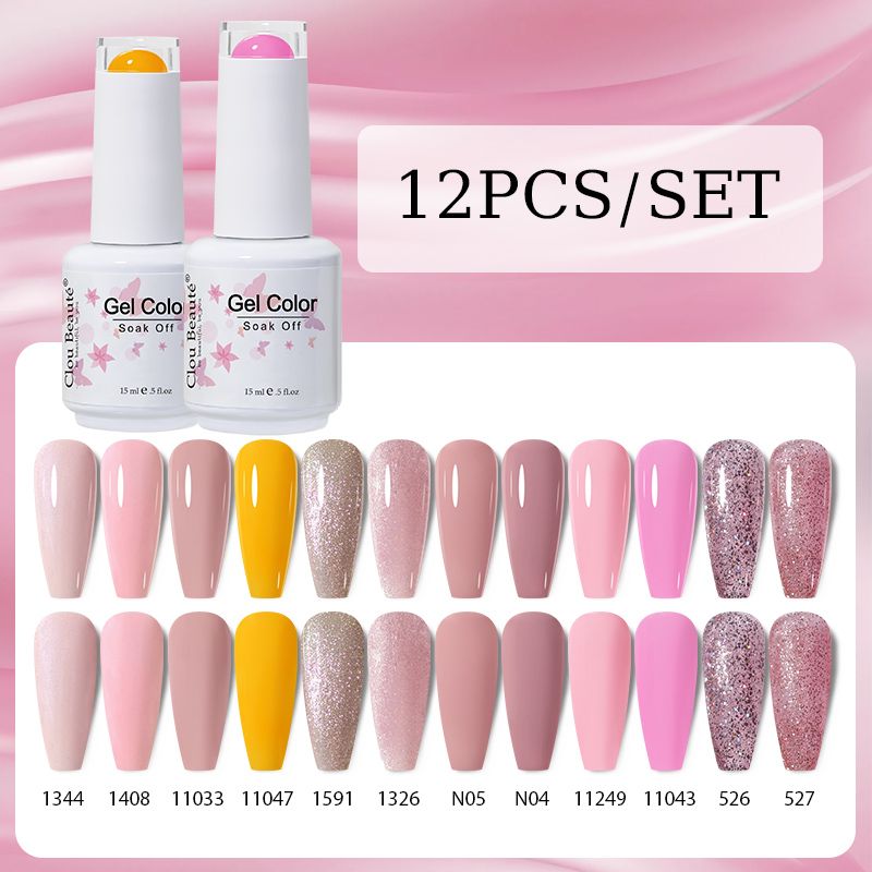 Clou Beaute 12pcs Gel Nail Polish Manicure Set Color 15ml White Glass Bottle Nail Art Kit Vernis Semi Permanent Nail Art Varnish