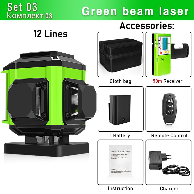 Clubiona 12/16 Lines Laser Level professional Super Green Laser Cross-Line 360 Self-Leveling Remote Control with li-ion Battery