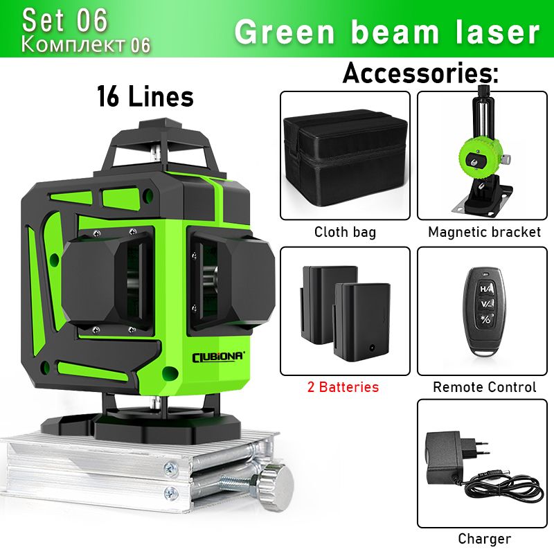 Clubiona 16/12 Lines Laser Level green line Self-leveling 360 Horizontal And Vertical Super Powerful green Beam Laser Level