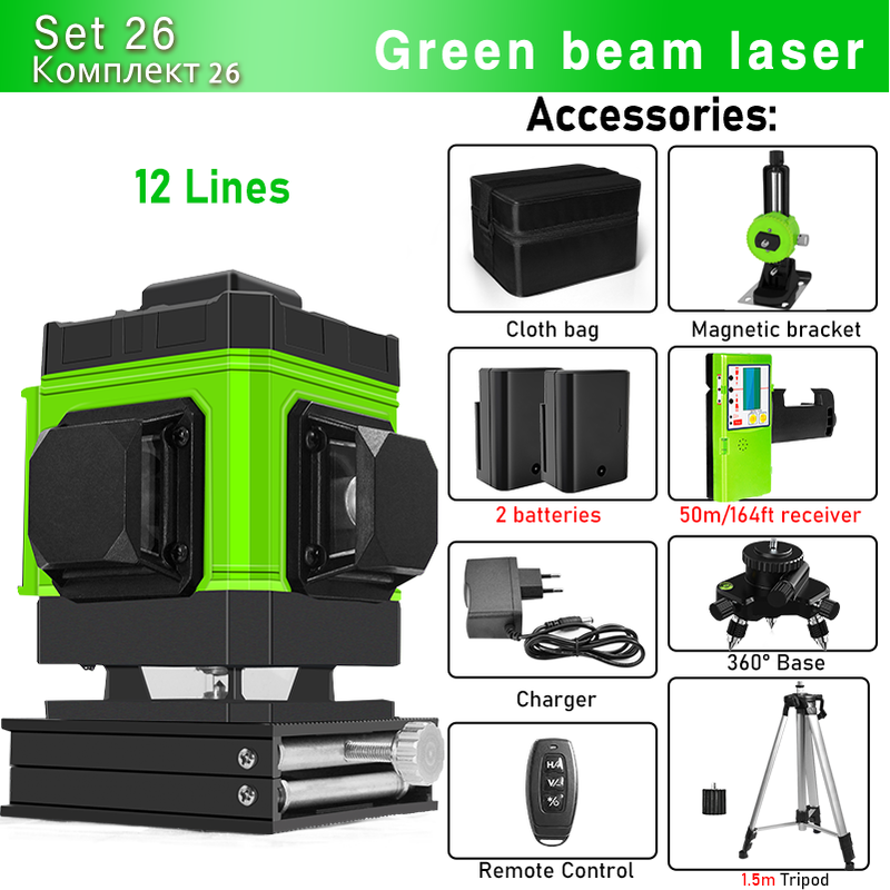Clubiona 16/12 Lines Laser Level green line Self-leveling 360 Horizontal And Vertical Super Powerful green Beam Laser Level