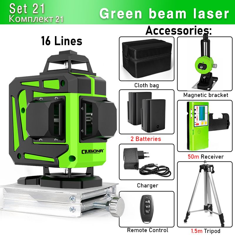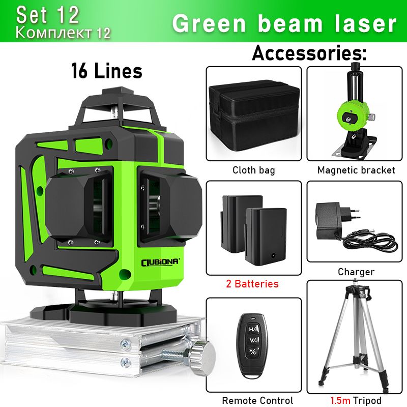 Clubiona 16/12 Lines Laser Level green line Self-leveling 360 Horizontal And Vertical Super Powerful green Beam Laser Level