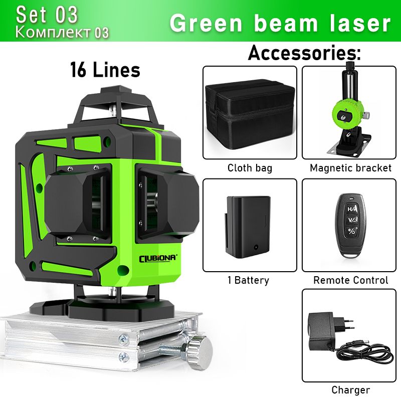 Clubiona 16/12 Lines Laser Level green line Self-leveling 360 Horizontal And Vertical Super Powerful green Beam Laser Level