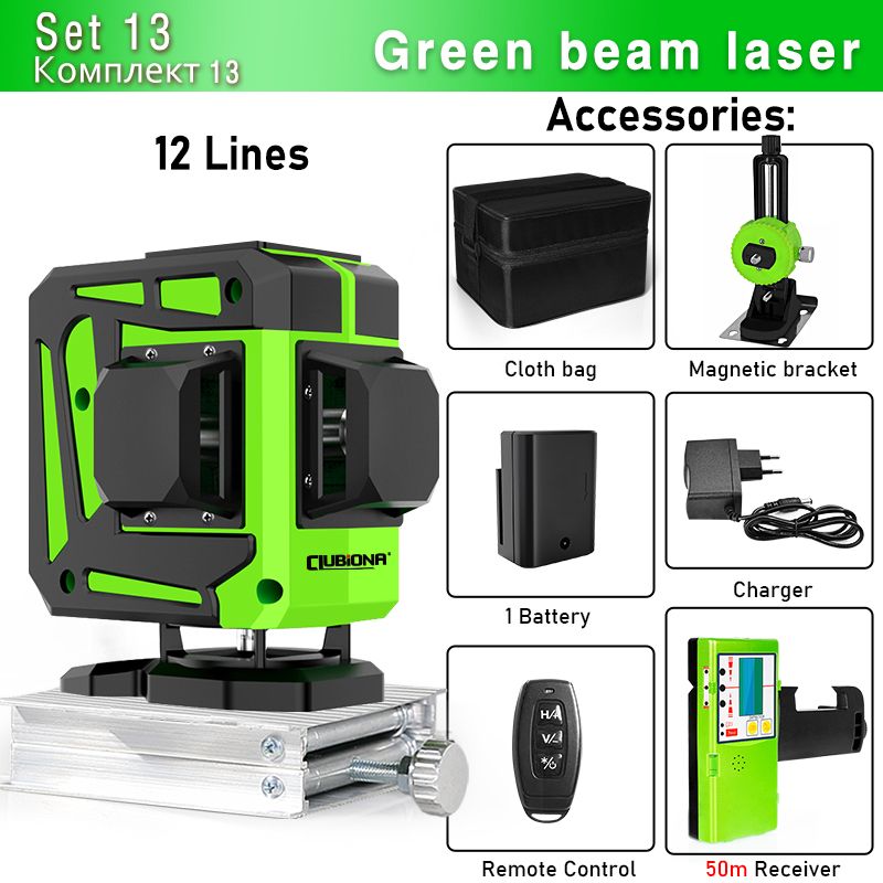 Clubiona 16/12 Lines Laser Level green line Self-leveling 360 Horizontal And Vertical Super Powerful green Beam Laser Level