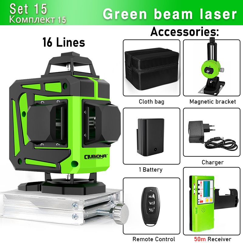 Clubiona 16/12 Lines Laser Level green line Self-leveling 360 Horizontal And Vertical Super Powerful green Beam Laser Level