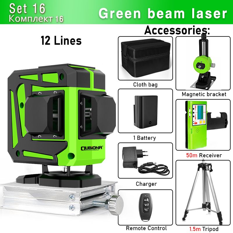 Clubiona 16/12 Lines Laser Level green line Self-leveling 360 Horizontal And Vertical Super Powerful green Beam Laser Level