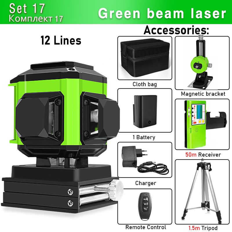 Clubiona 16/12 Lines Laser Level green line Self-leveling 360 Horizontal And Vertical Super Powerful green Beam Laser Level