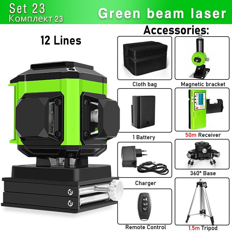 Clubiona 16/12 Lines Laser Level green line Self-leveling 360 Horizontal And Vertical Super Powerful green Beam Laser Level