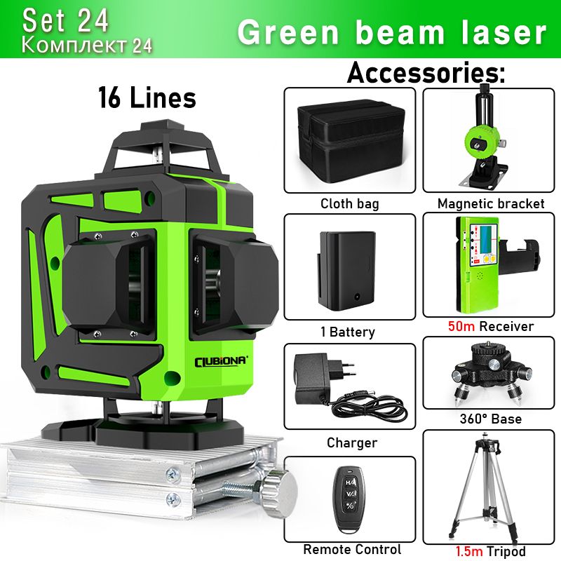 Clubiona 16/12 Lines Laser Level green line Self-leveling 360 Horizontal And Vertical Super Powerful green Beam Laser Level