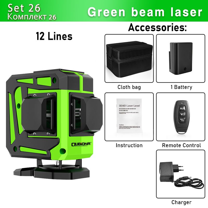 Clubiona 16/12 Lines Laser Level green line Self-leveling 360 Horizontal And Vertical Super Powerful green Beam Laser Level