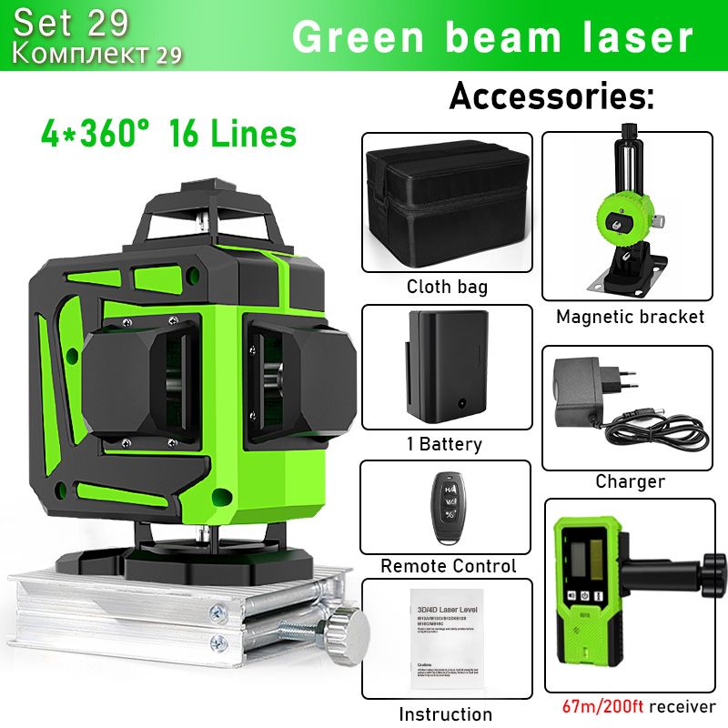 Clubiona 16/12 Lines Laser Level green line Self-leveling 360 Horizontal And Vertical Super Powerful green Beam Laser Level