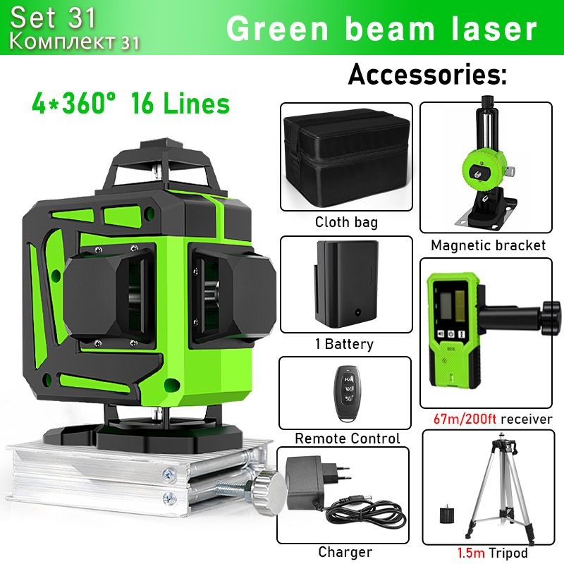 Clubiona 16/12 Lines Laser Level green line Self-leveling 360 Horizontal And Vertical Super Powerful green Beam Laser Level