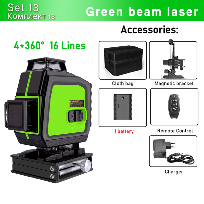 Clubiona 16/12 lines Laser Level professional Super powerful Green Lines With 3600mAh Li-ion Battery Remote Control pulse mode